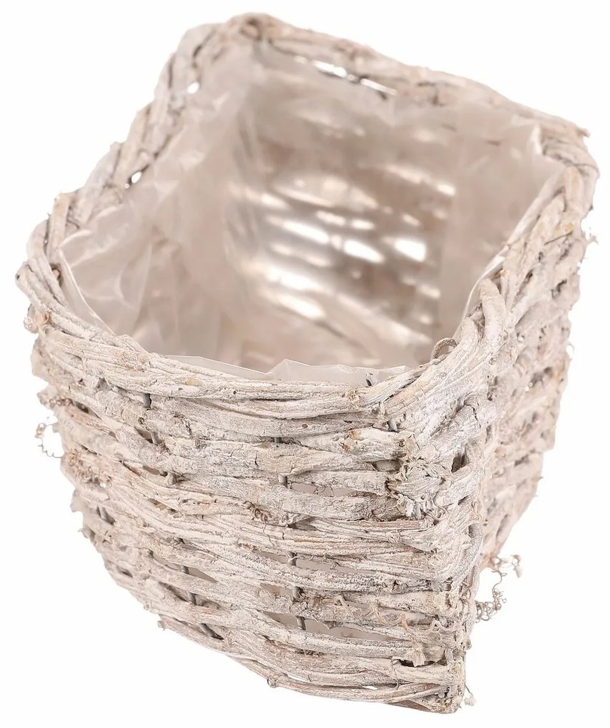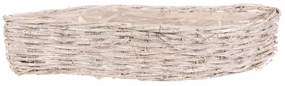 Súprava prútených obalov z bielenej révy ponúka dostatok miesta pre najrôznejšiu paletu rastlín a ďalších prízdob k nim. Táto dekorácia navodzuje dojem unikátnej ručnej práce, čo jej pridáva na hodnote a jedinečnosti. Súčasťou produktu je aj igelitová vložka, ktorá slúži na udržanie vlhkosti a ochranu povrchu pred priamym kontaktom s vodou. Rozmery malého obalu: 41 x 13 x 8 cm Rozmery veľkého obalu: 48 x 17 x 11 cm