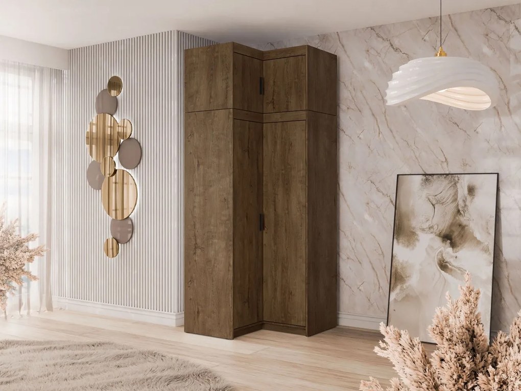 Rohová šatníková skriňa Melen 2D + nadstavec, Farby: Dub Lefkas
