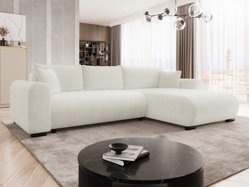 Krémovobiela rozkladacia/s úložným priestorom rohová pohovka (ľavý roh) Nanea – Makamii