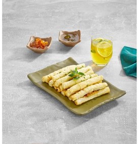 Obdĺžnikový tanier Terra z melamínu vo farbe khaki. Rozmery: 34,1 cm x 23,6 cm Výška: 3,3 cm Výhody melamínových výrobkov: 1) veľmi praktické, na použitie v gastronómii a v domácnosti/záhrade 2) odolnejšie ako porcelán/keramika 3) vhodné do umývačky riadu 4) vyrobené z materiálov, ktoré neobsahujú žiadne škodlivé látky 5) zdravé, šetrné k životnému prostrediu, bez plastov6) vyrobené s maximálnym dôrazom na detail7) veľmi moderné, pekné vzory