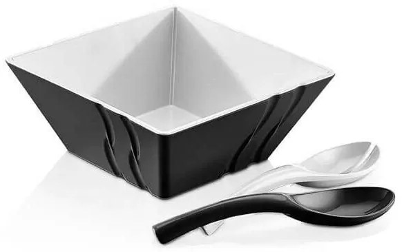 Melamínové riady na domáce a profesionálne použitie. Je odolný voči rozbitiu, bezpečný a hygienický a zároveň veľmi praktický a estetický. Výrobky sú vhodné do umývačky riadu. Šalátová súprava v čiernobielej farbe obsahuje:1 x misa 24 cm x 24 cm1 x lyžica1 x vidlička Kolekcia: LUXOR Výhody melamínových výrobkov: 1) veľmi praktické, na použitie v gastronómii a v domácnosti/záhrade 2) odolnejšie ako porcelán/keramika 3) vhodné do umývačky riadu 4) vyrobené z materiálov neobsahujúcich škodlivé látky 5) zdravé, šetrné k životnému prostrediu, bez plastov 6) vyrobené s maximálnym dôrazom na detail 7) veľmi moderné, pekné vzory