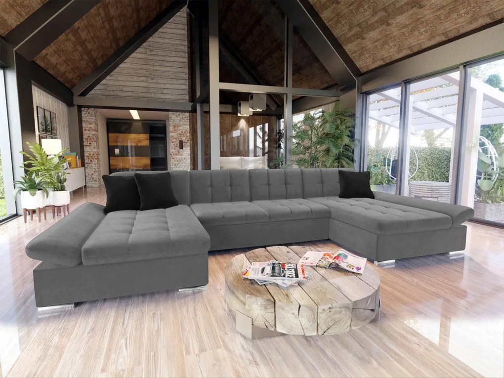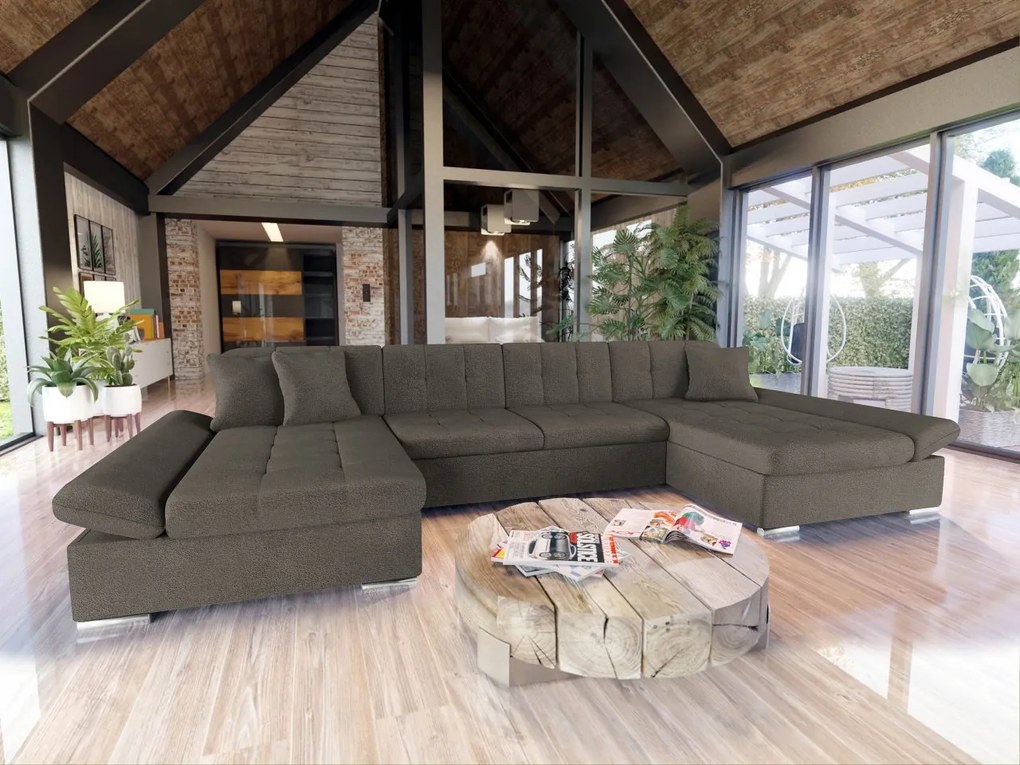 Kto by nesníval o tom, že si po náročnom dni bude môcť natiahnuť nohy na pohodlnej rohovej pohovke? Alebo aby si večer mohol sadnúť v širšej skupine priateľov bez obáv, že si navzájom narazia lakte?Rohová pohovka Agata s funkciou spania tieto očakávania spĺňa. Táto moderná rohová pohovka určite osloví milovníkov netradičnej elegancie v skutočne hollywoodskom štýle. Jej zaujímavá forma osvieži zariadenie interiéru a zabezpečí, aby si celá obývacia izba zachovala jednotný štýl. Rohová pohovka typu "U" zaručuje pocit pohodlia, komfortu a relaxu počas rodinného voľného času aj počas stretnutí s priateľmi. Takýto tvar jednoducho musí byť v interiéri vystavený!Priestranná rohová pohovka zaujme každého v dome. Bude tiež skvelým priestorom na detské hry - vaše deti si môžu postaviť domček z priložených vankúšov, zatiaľ čo vy si budete užívať nerušený oddych v druhej časti nábytku a zároveň dohliadať na ich bezpečnosť.Čalúnené operadlo je pevne pripevnené. Nastaviteľné podrúčky vám uľahčia nastavenie najpohodlnejšej opory. Konštrukcia sedadla bude mať zase pozitívny vplyv na vyrovnanie jednotlivých segmentov chrbtice, čím vám poskytne zdravé podmienky na relaxáciu. Po rozložení dosahuje rohová sedačka s funkciou spania nadpriemernú plochu na spanie, ktorá vám poskytne každodenný komfort a vašim hosťom pohodlný spánok. Vďaka dvom kontajnerom na lôžkoviny získate ďalší, diskrétny úložný priestor na sezónne oblečenie a zriedkavo používané doplnky.Mäkké tvary rohovej pohovky sa ponúkajú v pozoruhodných farbách. Široký výber farieb umožňuje ľahko zvýrazniť kvality vášho interiéru. Zadná časť čalúnená látkou vám navyše dáva možnosť umiestniť nábytok ľubovoľným spôsobom - aj v centrálnej časti obývačky bude vyzerať veľmi dobre. Chrómované predné nohy dodávajú nábytku jemný šarm a zároveň dodávajú zariadeniu jemný nádych modernosti.Vďaka použitiu vysokokvalitných komponentov sa rozkladacia rohová pohovka bude dlho tešiť svojej spoľahlivosti a odolnosti.Rozmery:šírka: 360 cm,hĺbka: 160 cm,výška: 75 cm,plocha na spanie: 360 x 130 cmRozmery úložného priestoru (dva kusy):dĺžka: 147 cm,šírka: 73 cm,výška: 23 cm,adĺžka: 147 cm,šírka: 73 cm,výška: 23 cmRohová strana: univerzálna (stranu si zákazník vyberie pri montáži)Prevedenie:konštrukcia sedadla: drevený rám + pružina + plsť + pena T2844 (10 cm) + čalúnická vatovitá tkanina,konštrukcia operadla: drevený rám + gumový pás + pena T2844 (5 cm) + čalúnická vatovitá tkanina,sedačka sa dá rozložiť, čo sa dá využiť na spánok,typ rohovej sedačky U,dva úložné priestory na posteľnú bielizeň,nastaviteľné podrúčky,sada vankúšov (3 malé) - na zips,trvalo čalúnené operadlo,chrómové predné nožičky, čierne plastové zadné nožičky,voľne stojaca sedačka v priestore (zadná strana potiahnutá látkou)Záruka: 24 mesiacov