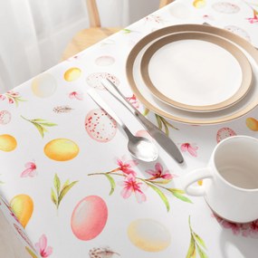 Teflónový obrus s veľkonočným motívom kraslíc a kvetín na bielom. Je vyhotovený z dekoračnej látky s teflónovou úpravou zo 100% polyesteru (gramáž 220g/m2). Obrus veľmi dobre drží tvar a hodí sa na akýkoľvek hranatý stôl. Vďaka teflónovej úprave vyliata tekutina nevsiakne do obrusu a zostane len na povrchu vo forme kvapiek. Obrus je odolný voči škvrnám - je ľahko umývateľný. Nečistoty stačí iba zotrieť vlhkou handričkou. Obrus s veľkonočným motívom dokonale skrášli Váš interiér. Tento obrus ponúkame vo väčšine štandardných rozmerov. Pokiaľ Vám požadovaný rozmer chýba, zvoľte si variantu "Vyhotovenie na mieru" a zadajte vlastné rozmery. Krajčírky potom obrus ušijú na mieru podľa Vášho želania. Obrus odporúčame prať na max 40°C, môžete ho tiež sušiť v sušičke. Jedná sa o kvalitný český výrobok s veľkonočným motívom, ktorý zakúpite iba v našom internetovom obchode. Aký rozmer obrusu vybrať? Obrus by mal z každej strany presahovať okraj stola aspoň o cca 15 - 20 cm. Pokiaľ máte stôl o rozmere 90 x 130 cm, odporúčame zakúpiť obrus s rozmermi minimálne 120 x 160 cm. Vždy ale záleží, kde budete obrus používať a aký presah Vám bude vyhovovať.