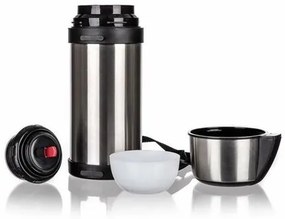 Nehrdzavejúca cestovná termoska PENTA s objemom 1,5 l, má dvojplášťové prevedenie, vonkajší aj vnútorný povrch je vyrobený z nehrdz. ocele 201. Má plastový uzáver a vo viečku termosky je vložený pohárik na pitie. Súčasťou termosky je plastové držadlo a popruh na pohodlné nosenie.Nehrdzavejúce termosky sú veľmi odolné a bezpečné, nehrozí rozbitie vložky či obarenia pri manipulácii. Teplotný pokles je závislý na teplote nápoja pri plnení, množstve nápoja a teplote okolia.