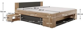 Postel SOFIA 180 x 200 cm, dub sonoma Rošt: S lamelovým roštom, Matrac: Matrac SOMMERA 18 cm