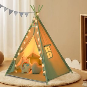 V priestrannom detskom stane od spoločnosti Jurhan® sa plnia detské sny. Veľký detský stan ponúka priestor pre 2 až 3 deti, je univerzálny v kombinácii s ďalšími hračkami a upúta pozornosť v každej detskej izbe. Podlahová podložka má hrúbku 2,5 cm a pri hraní poskytuje veľké pohodlie. Farebne zladená girlanda a hviezdicová reťaz so smajlíkmi vytvárajú útulnú a príjemnú atmosféru. Tri farebne zladené vankúše lákajú, aby ste sa k nim pritúlili. Motívy vankúšov sú veľmi pútavé: vankúš v tvare hviezdy a dúhou, vankúš v tvare srdca a štvorcový vankúš. Každé dieťa si tak nájde ten svoj obľúbený. Okno stanu sa dá zatvoriť závesom. Dvere sa dajú zatvoriť tiež závesom na bočnej strane. Praktické popruhy udržia všetko na svojom mieste a zabezpečia optimálne súkromie. Dve veľké vnútorné vrecká ponúkajú úložný priestor na hračky. Bezpečnosť je tu prioritou vďaka zaoblenej topoľovej tyči. Stan je vybavený aj protišmykovým systémom, takže zostane bezpečne na mieste, aj keď sa deti divoko hrajú. Rohy hviezdicovej retiazky sú zaoblené. Reťaz je vyrobená z robustného nerozbitného plastu, má 20 LED svetiel a funguje na batérie. Stan je vyrobený z kvalitnej, priedušnej bavlny a je ľahký a ľahko sa prenáša. Okrem toho, keď sa stan nepoužíva alebo keď cestujete, možno ho dokonale a priestorovo úsporne uskladniť v priloženej prepravnej taške. Stan je tiež skvelým darčekom. Jednoduché zostavenie teepee stanu. Prepravná taška pre jednoduché uskladnenie. Obsahom balenia je aj farebná girlanda a hviezdičkové svetlá. Mäkká a komfortná podložka. Výhody produktu: útulné, farebné detské teepee, v ktorom sa môžete hrať a zdržiavať mimoriadne veľká plocha vhodné pre 2 až 3 deti extra 2,5 cm hrubá podložka na pohodlné leňošenie protišmyková funkcia na bezpečné státie vysokokvalitná bavlna a zaoblené topoľové drevo rolovacia záclona na okne a uzatvárateľné dvere pre súkromie 2 veľké vnútorné vrecká na odkladanie hračiek farebne zladená girlanda s vlajkami extra dlhá hviezdna reťaz so smajlíkmi a zaoblenými rohmi svetelná reťaz s 20 LED diódami na batérie z plastu odolného proti rozbitiu 3 ďalšie vankúše (vankúš v tvare hviezdy s dúhou, vankúš v tvare srdca a štvorcový vankúš) vysokokvalitná prenosná taška na prepravu a skladovanie Technické údaje: rozmery: stan (v x š x h): 160 x 120 x 120 cm podložka (d x š x v): 120 x 120 x 2,5 cm záves: 22 x 25 cm vnútorné vrecko: 15 x 20 cm vankúš hviezda s dúhou: 40 x 40 cm vankúš srdce: 30 x 30 cm vankúš štvorec: 40 x 40 cm materiál:rozprávkové svetlá: 100% plast konštrukcia: 100% topoľové drevo stan: 100% bavlna podložka: 100 % bavlna záves: 100% bavlna vankúše: 100% polyester počet vnútorných vreciek: 2 ks dĺžka svetelnej reťaze: 3 m počet LED diód: 20 ks farba: šedá, modrá záruka: 24 mesiacov