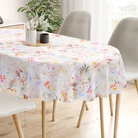 Bavlnený oválny obrus s motívom farebných jarných kvetín v záhrade na béžovom podklade. Je vyrobený z veľmi kvalitnej 100% bavlny (gramáž 145g/m2). Obrus veľmi dobre drží tvar a hodí sa na akýkoľvek oválny stôl. Obrus s motívom farebných jarných kvetín dokonale skrášli Váš interiér. Tento obrus ponúkame vo väčšine štandardných rozmerov. Pokiaľ Vám požadovaný rozmer chýba, zvoľte si variantu "Ušitie na mieru" a zadajte vlastné rozmery. Krajčírky potom obrus ušijú na mieru podľa Vášho želania. Jedná sa o kvalitný český výrobok s kvetinovým motívom, ktorý zakúpite iba v našom internetovom obchode. Aký rozmer obrusu vybrať? Obrus by mal z každej strany presahovať okraj stola aspoň o cca 15 - 20 cm. Pokiaľ máte oválny stôl o rozmere 90 x 130 cm, odporúčame zakúpiť obrus s rozmermi minimálne 120 x 160 cm. Vždy ale záleží, kde budete obrus používať a aký presah Vám bude vyhovovať.
