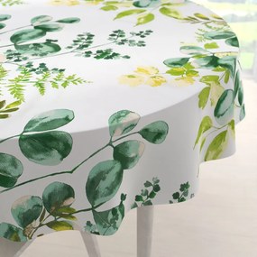 Biante Bavlnený okrúhly obrus Sandra SA-244 Zelený eukalyptus na bielom Ø 130 cm