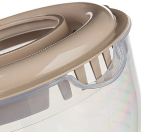 Plastová šľahacia dóza CULINARIA 2,5 l značky Banquet je praktickým pomocníkom na prípravu ciest, krémov, nátierok, šľahačky alebo snehu z bielkov. Objem 2,5 litra poskytuje dostatočný priestor na pohodlné miešanie a šľahanie. Dóza je vybavená dvojitým viečkom, ktoré zabraňuje rozstrekovaniu surovín počas šľahania. Protišmykové nožičky zaisťujú stabilitu misy na pracovnej ploche, zatiaľ čo praktické ucho uľahčuje manipuláciu. Dodávame v 2 farebných prevedeniach bez možnosti výberu - sivá a béžová. Hlavné výhody produktu: objem 2,5 l ideálny na šľahanie a miešanie ciest či krémov dvojité viečko zabraňujúce rozstrekovaniu surovín protišmykové nožičky pre stabilitu pri práci praktické ucho pre ľahké prenášanie a držanie Obsah balenia: 1x plastová šľahacia dóza CULINARIA 2,5 l 1x dvojité viečko s otvorom na šľahanie