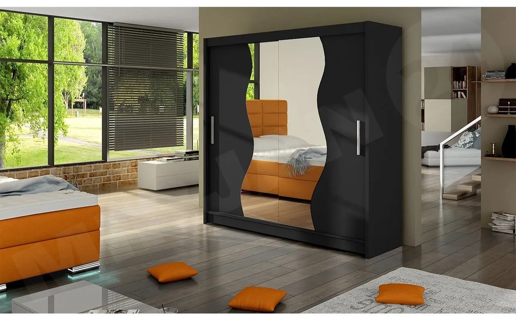 Skriňa s posuvnými dverami Rogano je dostupná vo viacerých farbách, vďaka čomu splní Vaše očakávania. Dekoračným prvkom je zrkadlo vlnitého tvaru. Zrkadlo nie je len zaujímavé, ale taktiež praktické. Opticky zväčší priestor, ktorý bude aj viac presvetlený. Skriňa s posuvnými dverami Vám zabezpečí prístup do nej a rýchly prehľad jej obsahu. Vnútro skrine obsahuje časť s tyčou na vešiaky a na poličky, vďaka ktorým si uložíte Vaše veci po poriadku Rozmery: šírka: 180 cm výška: 215 cm hĺbka: 57cm Farby: možnosť výberu farieb tu Vyrobené: drevotriesková doska laminovaná 16 mm, Hrany ohranované hranovacou páskou ABS, systém posuvných dverí, hliníkové vodiace lišty typu Micra z poľskej firmy Sevroll, zrkadlo, vybavená tyčou a objemnými policami, osvetlenie LED RGB je možné si doobjednať za príplatok Záručná doba: 24 mesiacov