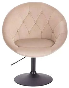 Kreslo VERA VELUR na čiernom tanieri Moderné a pohodlné kreslo s jednoduchým, ale originálnym tvarom vyrobené z moderného a príjemne jemného semišu. Kreslo je vhodné pre salóny krásy, kaderníctvo, moderné kuchyne, reštaurácie, bary, elegantné kancelárie, exkluzívne obchody, stánky na veľtrhoch, informačné miesta, ale aj domácnosti. Sedák aj opierka chrbta sú polstrované a potiahnuté jemným semišom. Prešitie opierky je zdobené potiahnutými gombíkmi, ktoré umocňujú elegantný vzhľad kresla. Pre velúr alebo semiš je typický jeho hebký a mäkký povrch, ide o materiál, ktorý je silnejší, odolnejší a jednoduchší na údržbu ako bežné tkaniny. Kovová konštrukcia je výškovo staviteľná, zaručuje dokonalú stabilitu kresla. - Pneumatické nastavenie výšky - Otočné sedadlo (360 stupňov) - Stabilná kovová základňa - Rozmery sedadla viď obrázok - minimálna výška sedadla od zeme - 42 cm - maximálna výška sedadla od zeme - 55 cm Nosnosť: 120 kg