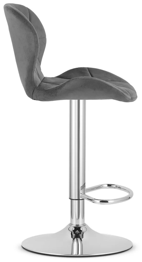 Materiál Zamatová tkanina: Sivá Kov: Chróm Rozmery Šírka: 46 cm Šírka sedadla: 45 cm Hĺbka: 48,5 cm Hĺbka sedadla: 34 cm Výška: 90 - 111 cm Výška operadla: 26 cm Výška sedu: 59,5 - 81,5 cm Hmotnosť: 5,8 kg Nosnosť: 110 kg Vyhotovenie Plne otočné sedadlo Výškovo nastaviteľná Pohodlná opierka na nohy Protišmyková základňa proti poškriabaniu podlahy Dodávané v demonte Pozn.: Pri zostavovaní je nutné odstrániť plastový ochranný kryt v hornej časti piestu.