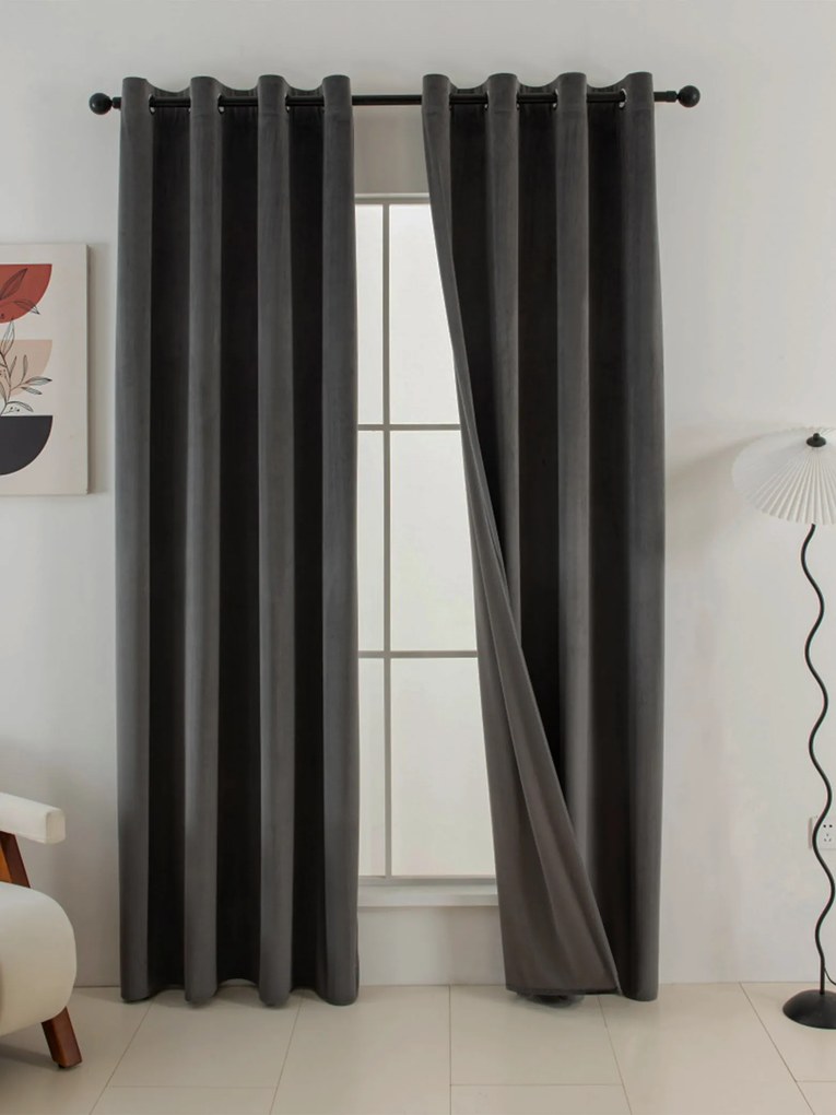 Zamatové zatemňovacie závesy Cesar tmavo sivé - 140 x 180 cm (2ks) - krúžky