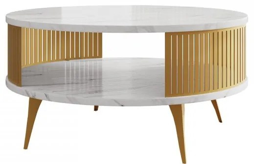 Konferenčný stolík Mozimo Gold, Farba: zlatá/biely mramor