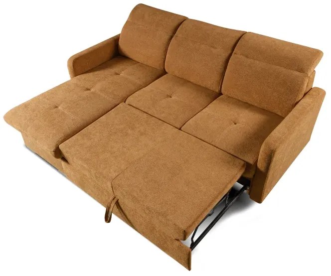 Horčicová rozkladacia rohová pohovka ZENOVA 220x140 cm, obojstranná