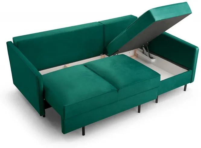 Rozkladacia rohová čalúnená sedacia súprava v tvare L ALTA pravá zelená