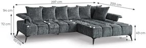94×297×200 cm, - ľavý roh, v modernom štýle, s nožičkami