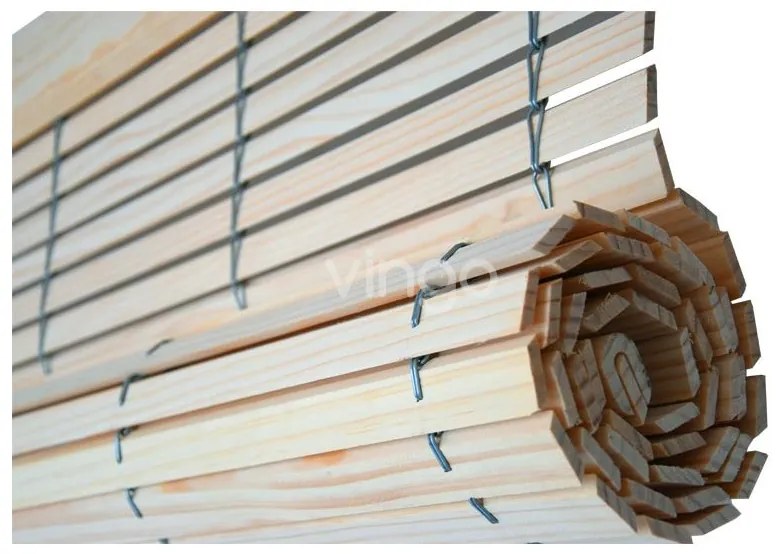 Drevené rolety v prírodnej farbe: z krásneho a odolného borovicového dreva, ktoré dlho rastie - keď sa roleta rozbalí, nádherne vonia skvelé na von, vhodné aj do interiéru. prírodný neošetrený nelakovaný povrch vhodný na natretie farbou, ktorá bude rovnaká ako zvyšok vašej terasy či pergoly roletu odporúčame natierať zavesenú a z oboch strán, aby na nej nevznikali kvapôčky zaschnutej farby a povrch zostal hladký vonkajšie drevené rolety do pergol odolajú občasnému vetru aj dažďu jednotlivé drevené lamely sú spojené kovovými háčikmi - všetko spoločne dobre držia, háčiky sú pevné a odolné voči hrdzi Zatieni aj vytvorí súkromie drevené rolety chránia pred ostrým slnkom i horúčavou a tiež pred vetrom: ideálne pre otvorené pergoly, altány, terasy či balkóny pomôžu rozdeliť priestor na 2 časti a vytvoriť útulno a súkromie lamely so šírkou cca 2 cm medzi sebou majú škvíru cca 0,5 cm - rolety teda zatieni, ale trochu svetla cez ne presvitá - úplne nezatemní vzduch škárami preťahuje, priestor za roletami zostáva vetraný - ideálny na balkón, na terasu či do pergoly lamely sú pevné, nemožno ich naklápať ako žalúzie Jednoduchá montáž aj ovládanie roletu z dreva spustíte aj vytiahnete rýchlo a ľahko - pomocou špagátu, ktorý je uprostred rolety vďaka kovovej brzde ju môžete zastaviť v akejkoľvek polohe súčasťou balenia sú 2 očká skobičky zatlčte do trámu alebo do dosky očká zaskrutkujete do hornej lamely rolety a zavesíte na skobičky priemer rolka zmotanej rolety v rozvine 100 cm je cca 12 cm, pri rozvine 220 cm je priemer cca 17 cm stačí len chvíľka a rolety môžu visieť Časté otázky Je možné lamely naklápať? - Nie, lamely na roletách naklápať nemožno. Môžem objednať rolety aj v inej veľkosti? - Je nám ľúto, ale nie sme výrobcovia roliet, iné ako ponúkané rozmery nemožno dodať. Je možné rolety namontovať na šikmé okná v podkroví? - Nie, rolety visí vždy zvisle dole. Vingo na Prima TV - Jak na stínění Použití na terase Ovládání rolety