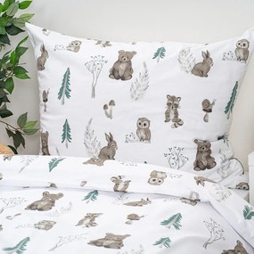 Bavlnené obliečky Forest Friends našej vlastnej značky 4Home prinesú do detskej izby útulnú a rozprávkovú atmosféru. Roztomilý motív medvedíkov, veveričiek, sovičiek a lesných stromov vytvára pokojné a hravé prostredie, ktoré podporuje príjemný spánok a pohodu.Vyrobené zo 100% bavlny, obliečky sú príjemné na dotyk, priedušné a šetrné k detskej pokožke. Kvalitný materiál zaručuje dlhú životnosť, zachovanie farieb aj pohodlné používanie po celý rok. Praktické zapínanie na zips uľahčuje prezliekanie a zaisťuje, že perina aj vankúš zostanú vždy na svojom mieste.Vďaka neutrálnym farbám a jemnému vzoru sa obliečky skvele hodia pre chlapcov aj dievčatá a ľahko sa kombinujú s ďalšími doplnkami v detskej izbe.Hlavné výhody produktu: roztomilý motív lesných zvieratiek pre detskú izbu 100% bavlna pre maximálne pohodlie a priedušnosť šetrné k detskej pokožke, príjemné na dotyk zapínanie na zips pre ľahké povliekanie dlhá životnosť a stálosť fariebObsah balenia: 1x obliečka na prikrývku 140 x 200 cm 1x obliečka na vankúš 70 x 90 cmParametre a špecifikácie: údržba: pranie na 40 °C, vhodné do sušičky