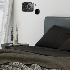 Nástenné svietidlo Satino Round, 1x čierne/strieborné textilné tienidlo, b