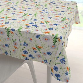 Biante Bavlnený štvorcový obrus Sandra SA-601 Margaréty a zvončeky na bielom 140x140 cm