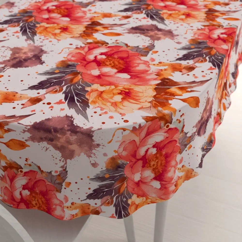 Bavlnený oválny dekoračný obrus na stôl so vzorom veľkých červeno-ružovo-oranžových kvetov pivonky na bielom podklade. Je ušitý z husto tkaného 100% bavlneného plátna s certifikátom zdravotnej nezávadnosti Oeko-Tex 100. Obrus dodávame kompletne obšitý. Dekoračné obrusy Sandra sú praktickým doplnkom interiéru Vášho domu, bytu, chalupy a sú vhodné aj do hotelov a reštaurácií. Ako správne zvoliť rozmer obrusu? Uvedené rozmery sú rozmery obrusu, nie stola. Bežný doporučený presah obrusu je cca 20-30 cm na každú stranu stola, tzn. ak máte stôl s rozmerom napr. 60x100 cm, objednávajte obrus s rozmerom 100x140 cm až 120x160 cm, vždy však s prihliadnutím na vlastné individuálne požiadavky. Šijeme v našich krajčírskych dielňach v ČR, ponúkame aj rozmery na mieru.