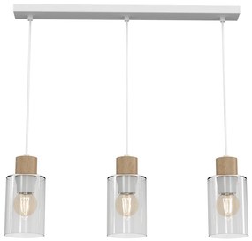 Závesné svietidlo MADERA s tromi transparentnými sklenenými tienidlami a detailmi z bukového dreva je ideálnym riešením pre osvetlenie kuchynského ostrova alebo jedálenskej plochy . Vďaka čistému tvarovaniu a prírodným materiálom svietidlo pôsobí vzdušne, prirodzene a elegantne , a zároveň dokonale zapadá do moderných interiérov s drevenými akcentmi . Priame svetlo smerujúce nadol efektívne osvetlí pracovnú plochu bez oslňovania, zatiaľ čo transparentné sklenené tienidlá ho jemne rozptýlia a vytvoria príjemnú atmosféru. Práve táto kombinácia robí zo svietidla MADERA praktický aj estetický doplnok, ktorý vynikne nielen v kuchyni, ale aj v obývačke či jedálni . Každé zo sklenených tienidiel má výšku 150 mm a šírku 100 mm, čím vytvára kompaktný, no dostatočne dominantný svetelný bod. Výšku zavesenia možno jednoducho prispôsobiť v rozmedzí 400–900 mm , čo umožňuje ideálne prispôsobenie konkrétnemu priestoru a výške stropu. Svietidlo je určené pre tri žiarovky s päticou E27 , ktoré zabezpečia dostatok svetla pre každodenné činnosti. Pracuje pri napätí 230 V a frekvencii 50 Hz. Model MADERA je odpoveďou na dopyt po dekoratívnom, funkčnom a nadčasovom osvetlení s dôrazom na prírodné prvky .
