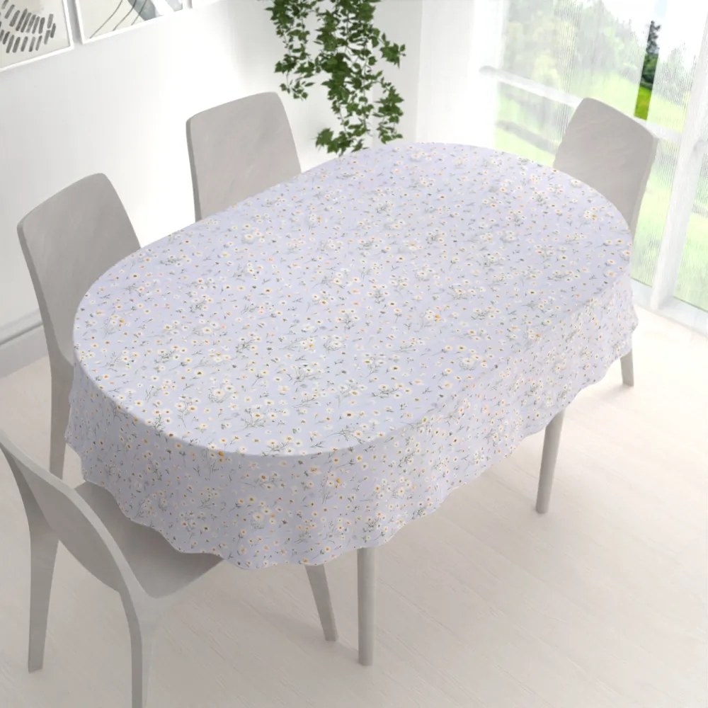 Biante Bavlnený oválny obrus Sandra SA-617 Margarétky na svetlo modrom 140x200 cm