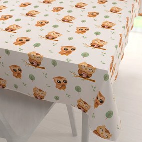 Biante Detský bavlnený obdĺžnikový obrus Sandra SA-616 Sovičky na vetvičkách na bielom 140x160 cm
