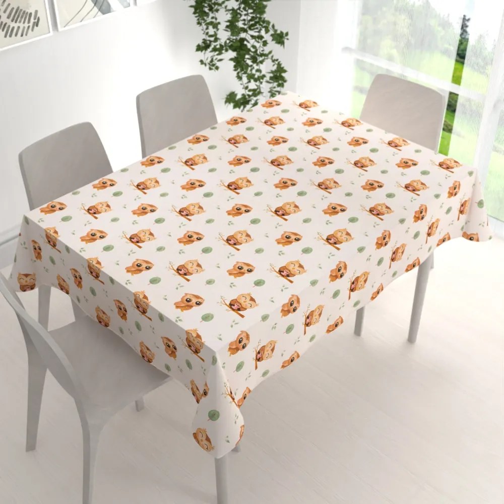 Detský bavlnený obdĺžnikový dekoračný obrus na stôl s milým detským motívom sovičiek na vetvičkách na bielom podklade. Je ušitý z husto tkaného 100% bavlneného plátna s certifikátom zdravotnej nezávadnosti Oeko-Tex 100. Obrus dodávame kompletne obšitý. Dekoračné obrusy Sandra sú praktickým doplnkom interiéru Vášho domu, bytu, chalupy a sú vhodné aj do hotelov a reštaurácií. Ako správne zvoliť rozmer obrusu? Uvedené rozmery sú rozmery obrusu, nie stola. Bežný doporučený presah obrusu je cca 20-30 cm na každú stranu stola, tzn. ak máte stôl s rozmerom napr. 60x100 cm, objednávajte obrus s rozmerom 100x140 cm až 120x160 cm, vždy však s prihliadnutím na vlastné individuálne požiadavky. Šijeme v našich krajčírskych dielňach v ČR, ponúkame aj rozmery na mieru.
