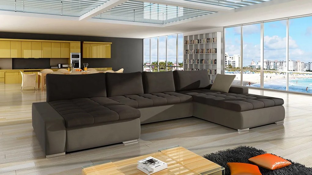 Rozkladacia rohová čalúnená sedacia súprava AVESTA do tvaru U, antracit, s úložným priestorom