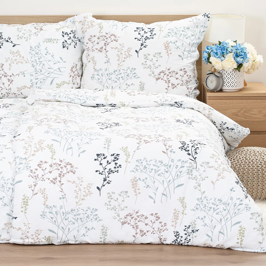 Krepové obliečky Pastel Garden od našej vlastnej značky 4Home prinesú do vašej spálne jemnú eleganciu a romantickú atmosféru. Nežný motív kvetinových vetvičiek v pastelových tónoch modrej a béžovej na svetlom podklade vytvára harmonický a svieži vzhľad, ktorý krásne doplní moderné aj klasické interiéry.Sú vyrobené z kvalitného krepového materiálu, vďaka tomu sú ľahké, vzdušné a veľmi príjemné na dotyk. Praktickú nežehlivú úpravu ocení každý, kto si chce ušetriť čas s údržbou. Priedušná bavlna zaistí pohodlný spánok v každom ročnom období. Zapínanie na zips umožňuje ľahké prezliekanie a udržuje prikrývku aj vankúš na svojom mieste.Vďaka decentnému dizajnu inšpirovanému prírodou sú obliečky ideálnou voľbou pre každého, kto chce do spálne vniesť ľahkosť a pohodu.Hlavné výhody produktu: romantický kvetinový vzor v jemných pastelových tónoch kvalitný krepový materiál s nežehlivou úpravou 100% bavlna pre maximálne pohodlie a priedušnosť zapínanie na zips pre ľahké povliekanie dlhá životnosť a farebná stálosťObsah balenia: 1x obliečka na prikrývku 140 x 220 cm 1x obliečka na vankúš 70 x 90 cmParametre a špecifikácie: údržba: pranie na 40 °C, nežehlivá úprava