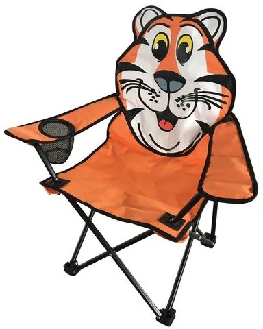 Záhradná detská skladacia stolička je malá, praktická, prenosná pomôcka. Vďaka stoličke môžete deti usadiť kdekoľvek, čím predídete napríklad sedeniu na zemi v prírode.Stolička je oranžovej farby, s motívom tigra v časti chrbta. V opierke na lakeť je miesto určené pre umiestnenie nápoja.Konštrukcia je vyrobená z kovu s priemerom 13 x 0,7 mm, čím poskytuje pevnosť.Rozmery: 35 x 35 x 55 cm.Nosnosť: do 60 kg