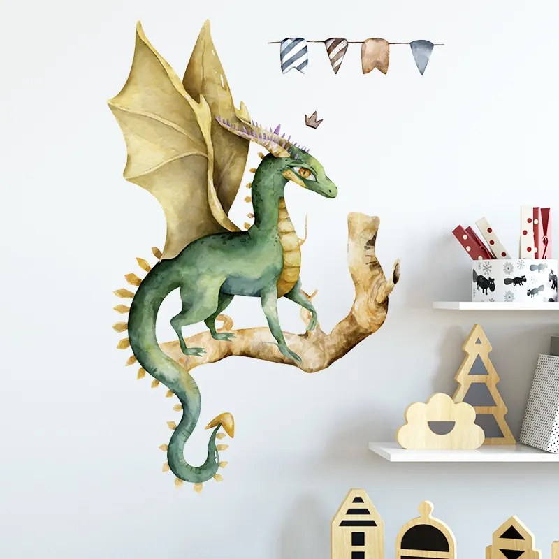 Samolepku tvorí drak na konári a doplnková samolepka (girlanda) . Každá samolepka sa lepí zvlášť. Lepí sa ako obyčajná samolepka, je vodou umývateľná. Rozmer balenia: 39 x 54 cm Rozmer samolepky po nalepení: 37 x 52 cm Materiál: PVC Samolepka najlepšie drží na hladkom povrchu, napríklad nábytok, ale môže sa lepiť aj na stenu so stredne hrubou omietkou, ktorá sa neolupuje a neopadáva. Lepí sa ako obýčajná samolepka. Je vodou umývateľná.