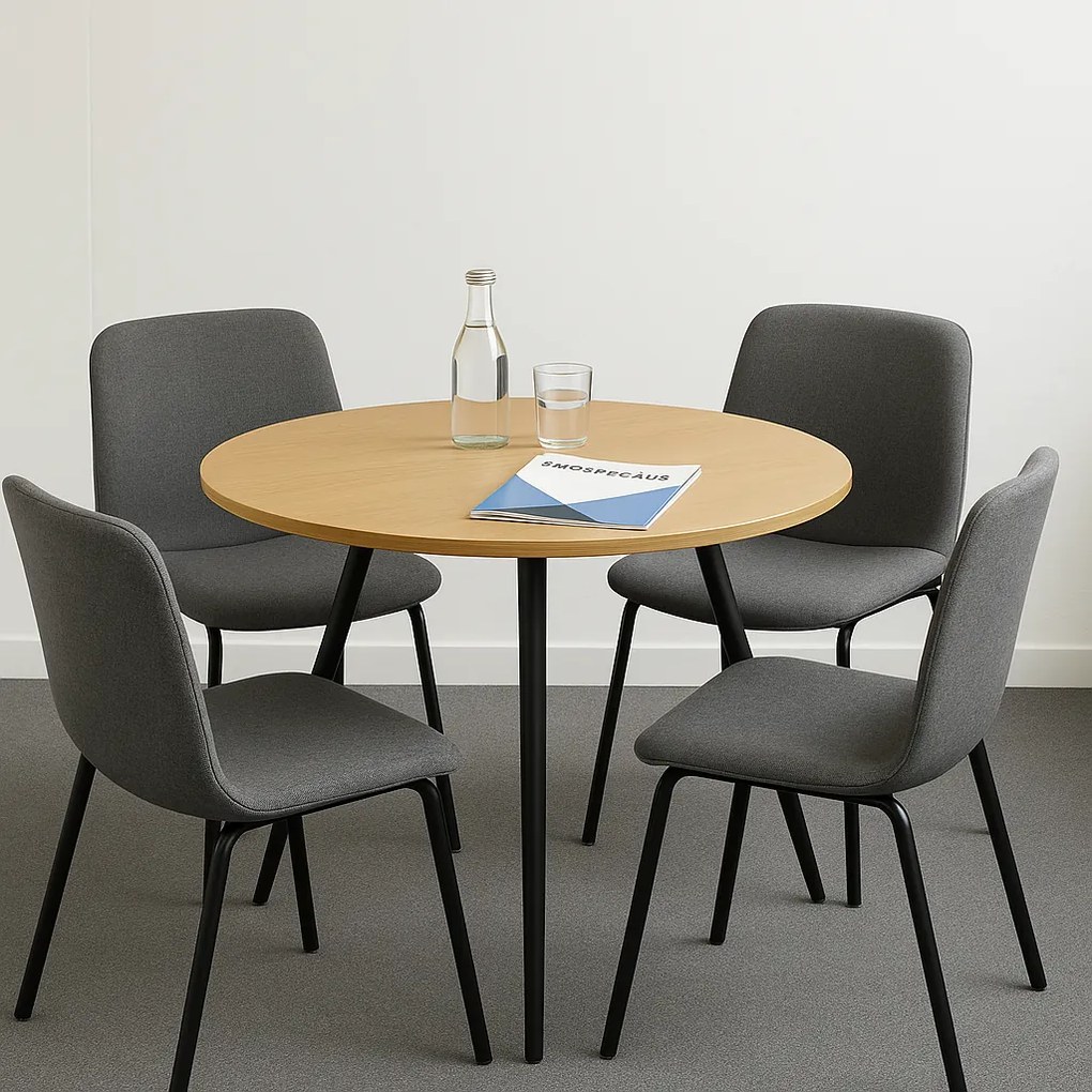 Konferenčný stôl PRIMO ZEN, priemer 100 cm, sivostrieborná podnož, breza