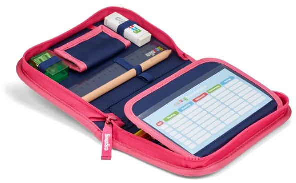 Peračník Ergobag je plne vybavený, jednoposchodový peračník s chlopňou a priestorom na rozvrh hodín. Súčasťou sú trojhranné pastelky a ceruzky značky Lyra. Ich špeciálny trojhranný tvar napomáha správnemu uchopeniu. Vnútrajšok peračníka je tmavomodrý.Obsah peračníka:6x Lyra trojhranná pastelka - hrubá10x Lyra trojhranná pastelka - tenká1x ceruzka trojhrannástrúhadlo, guma, pravítko