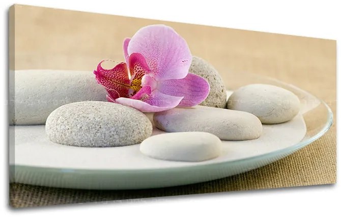 Obraz masážnych kameňov a orchidey na vode (90x60 cm)