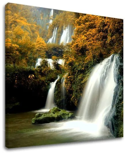 Obraz - Vodopády v jesennej krajine, oranžový (90x60 cm)