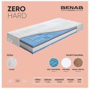 Penový matrac Benab Morfeus Hard 200x160 cm (T3/T5) s výškou 19 cm a hĺbkou 200 cm je sendvičový matrac odvodený od obľúbeného modelu Morfeus v tvrdej verzii. Matrac obsahuje prírodnú kokosovú vrstvu a obojstrannú 7 zónovú profiláciu s kvalitnej PUR peny. Jeho povrch je tvarovaný obojstranne do nopov, ktoré zlepšujú prekrvenie pokožky a uvoľňujú svalstvo počas spánku. Matrac je obojstranne použiteľný a dvojitej tvrdosti s odporúčaním pre páry s váhovým rozdielom. Má 3 roky záruky a je prateľný na 60 stupňoch. Matrac je vybavený snímateľným poťahom Chloe aktiv, ktorý je snehovo biely a na dotyk príjemný, obsahuje certifikovaný OEKO-TEX standard, je antibakteriálny, antiroztočný a vybavený klimatizačnou výplňou. Okrem toho je možné použiť aj špeciálny nepriepustný poťah SanMed, ktorý zabraňuje preniku tekutín do jadra matraca.