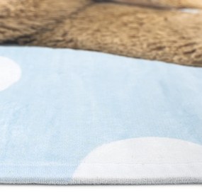 Modrý detský koberec s roztomilým medvedíkom z kolekcie Ultra Soft. Tieto hravé koberce sú vhodné ako pre tých najmenších, tak aj pre väčšie deti. Ich prednosťou je ultra mäkký materiál, ktorý je ohybný a hrejivý. Rubová strana je protišmyková.