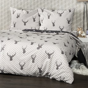 Aby boli aj vaše noci naozaj pohodové, chce to príjemné obliečky k zababušeniu! Uvelebte sa v bavlnených obliečkach s motívom jeleňov a užite si tú správnu pohodu každý deň. Decentná kombinácia odtieňov sivej a bielej skvele doladí každý interiér. Obliečky sú vyrobené z kvalitnej 100% bavlny, ktorá zaručí príjemné zaspávanie.Obliečky sú obojstranné - z jednej strany motívmi jeleňov na tmavom podklade, z druhej strany na harmonickom vzore rybej kosti - môžete ich teda ľubovoľne kombinovať a meniť svoju posteľ každý deň. Pre maximálne pohodlie majú obliečky praktické zapínanie na zips.Súprava obsahuje: 1x obliečka na vankúš 70 x 80 cm 1x obliečka na prikrývku 160 x 200 cm