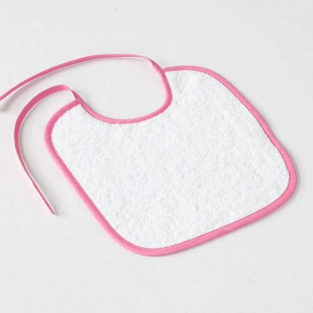 Praktický detský podbradník bielej farby s farebnými okrajmi. Je vyrobený z kvalitného a vysoko savého materiálu, ktorý je ľahký, splývavý, zdravotne nezávadný a zároveň jemný a šetrný k detskej pokožke. Podbradníky sú pre svoju praktickosť obľúbené u detí aj rodičov. Materiál: 90 % bavlna / 10 % polyester, froté (350 g/m2) Rozmery: 25x25 cm