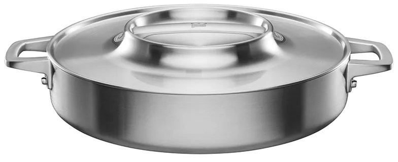 Robustná nerezová panvica s pokrievkou Norden si vás získa prvotriednou kvalitou a skvelými vlastnosťami pri varení. Hliníkové jadro medzi vonkajšou a vnútornou vrstvou z nerezovej ocele zabezpečuje rovnomerný ohrev na všetkých typoch sporákov. Výrazný dizajn pokrievky je inšpirovaný tradičným severským riadom a padne dobre do ruky. Balené v dizajnovej darčekovej krabici. Povrch je chránený vrstvou Thermium™, ktorá prináša prirodzenú nepriľnavosť povrchu aj pri vysokých teplotách. Hlavnými zložkami sú prírodný kremík a kyslík nanášané vo veľmi tenkej vrstve o veľkosti 1 mikrónu, čo vedie k veľmi tepelne odolnému a chemicky stabilnému nepriľnavému povrchu. Povrch neobsahuje žiadne ťažké kovy ani plasty a je úplne bez PFOA a PTFE a aj pri zahriatí na veľmi vysoké teploty nehrozí nebezpečenstvo uvoľnenia chemických látok. Balené v dizajnovej darčekovej krabici. ROZMERYPriemer 28 cm MATERIÁLNerezová oceľ s povrchovou úpravou Thermium™ POKYNY K ÚDRŽBEJe možné umývať v umývačke riadu. Panvica je vhodná pre všetky typy sporákov vrátane indukcie aj na pečenie do rúry do 240°C. VYROBENÉ VO FÍNSKUVyrobené vo Fínsku s ochranným symbolom Made in Finland.