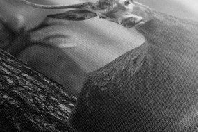 Obraz - Jeleň v lese 2, čiernobiela (120x50 cm)
