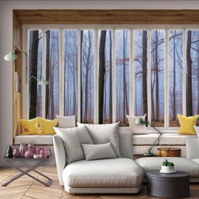 Fototapeta - Les zahalený v hmle - okno (254x184 cm)