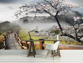 Fototapeta - Kvety na drevenom podklade (254x184 cm)