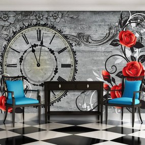 Fototapeta - Hodiny s kvetinami (254x184 cm)