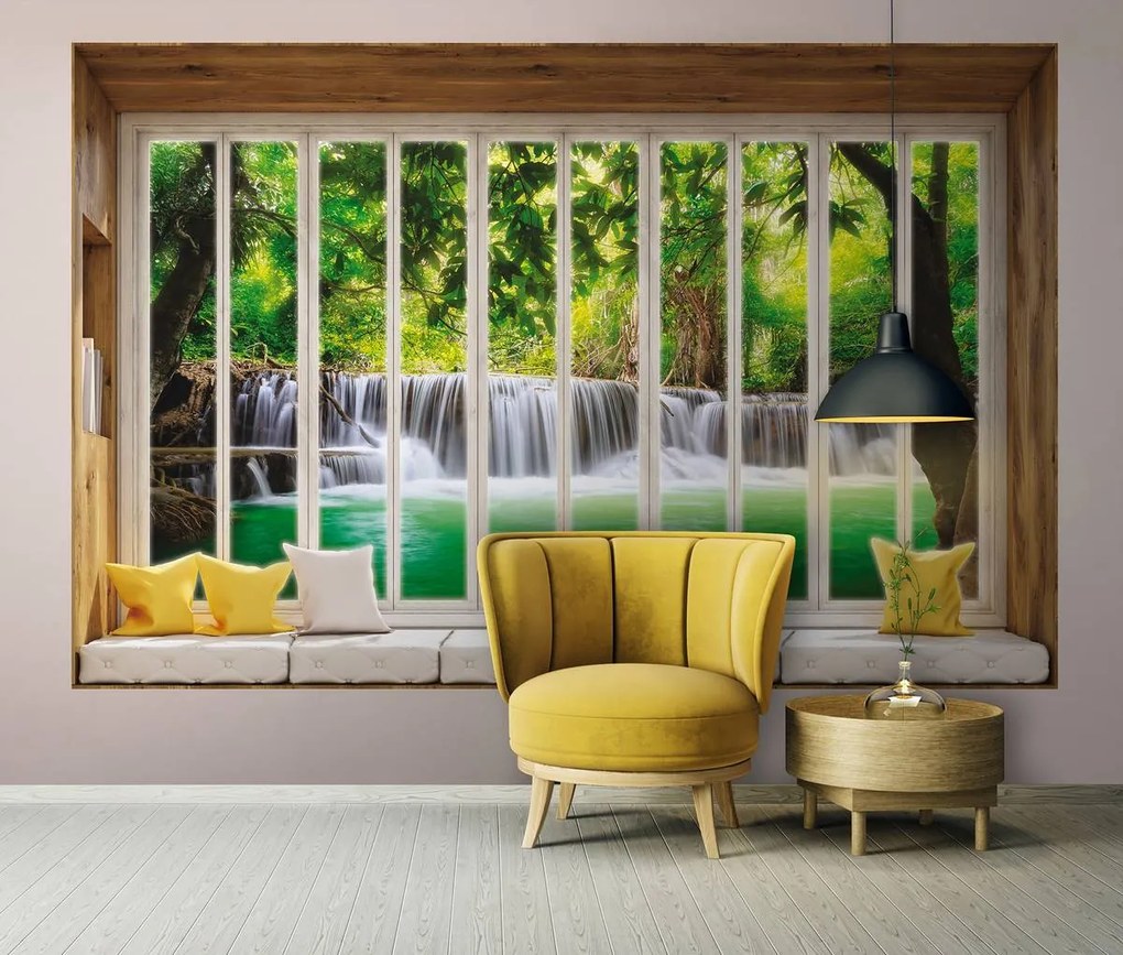 Fototapeta - Výhľad z okna na vodopád (152,5x104 cm)